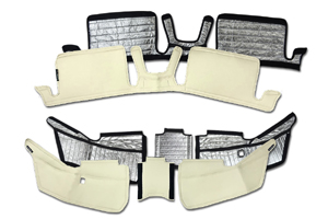 従来デッキカバーのPVCレザー+スポンジシートの裏面に断熱材をプラスする事によりさらなる断熱効果を生み室温上昇を抑え冷房効果のアップが期待できます。 |